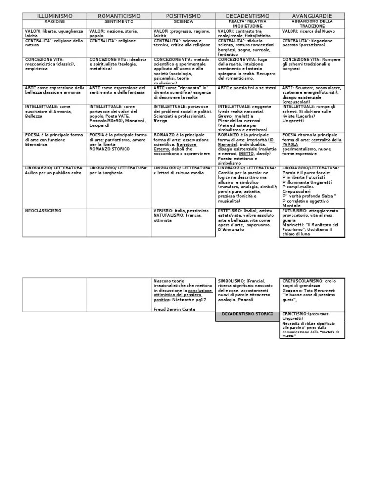 Schema Correnti Letterarie 800 900 - Letteratura 3ª Media Aiutodislessia Net